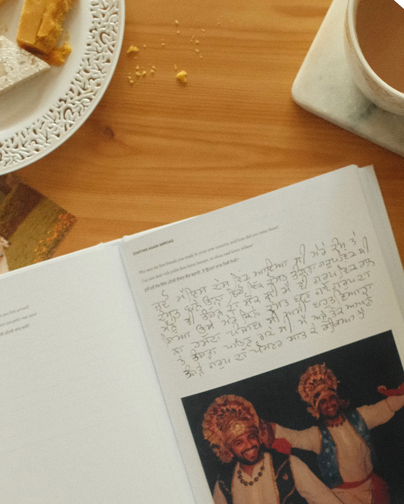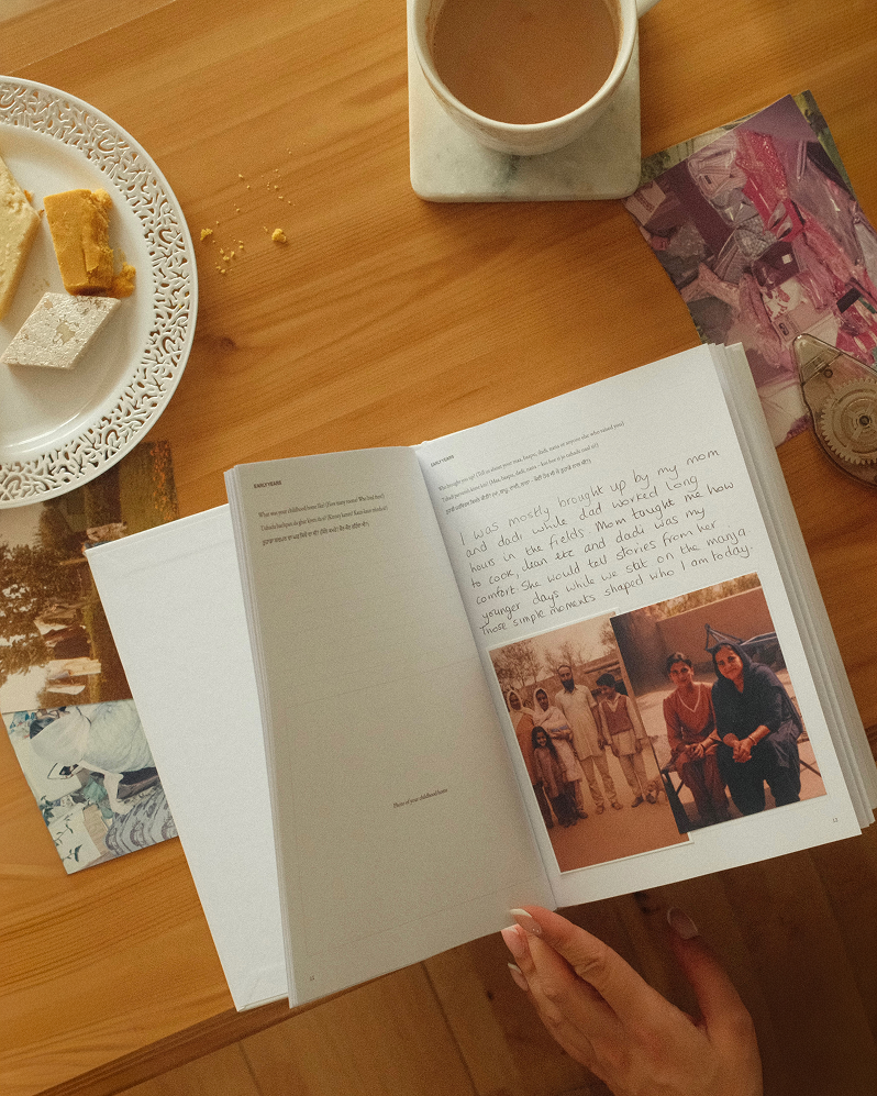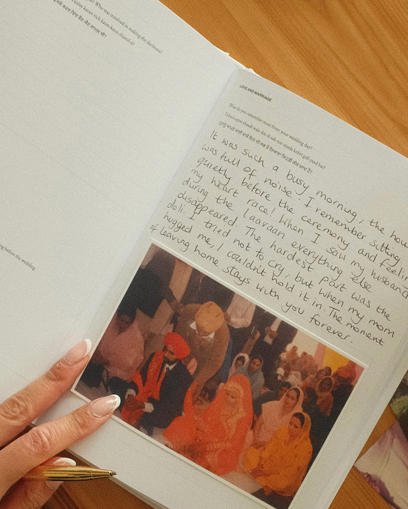 Write their answers in their own words - in Panjabi, English, or a mix of both. There’s also space to add old photographs and mementos that bring their story to life.