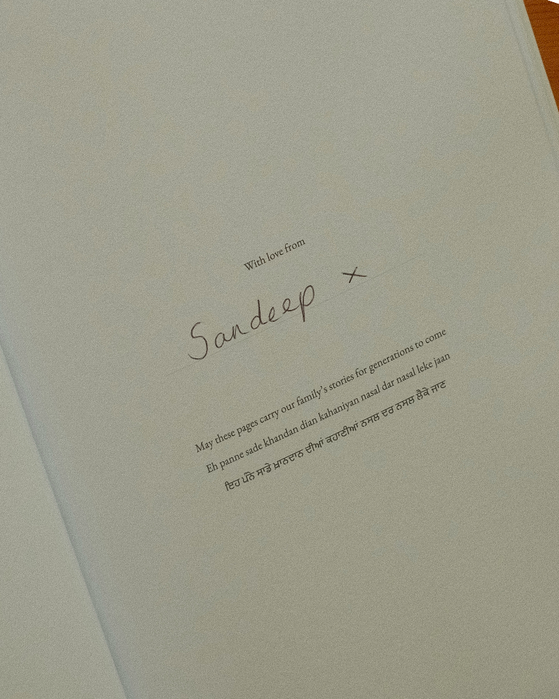 My Panjabi Story was created to help you preserve those memories before they’re lost - with questions that honour their voice and a format that makes it easy to sit down and start. This is more than a book. It’s their legacy in your hands.